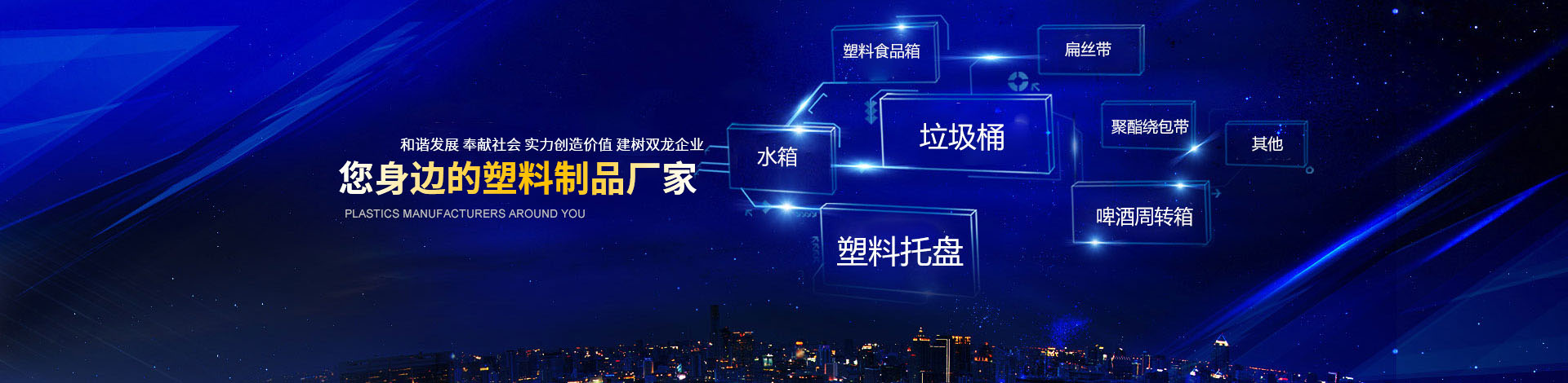 臨沂市雙龍塑料有限公司是專業塑料托盤生產廠家。公司創建于二零零七年,座落于中國著名的商品批發城—山東臨沂市,具備便利的物流交通環境。本公司主要產品:塑料托盤、垃圾桶,水箱; 塑料生活系列產品:塑料桌椅、塑料水桶、塑料方凳等、品種達數百余個;塑料包裝系列產品,啤酒周轉箱,塑料食品箱、扁絲帶、聚酯繞包帶等; 歡迎廣大國內外客商前來洽談,合作投資!..